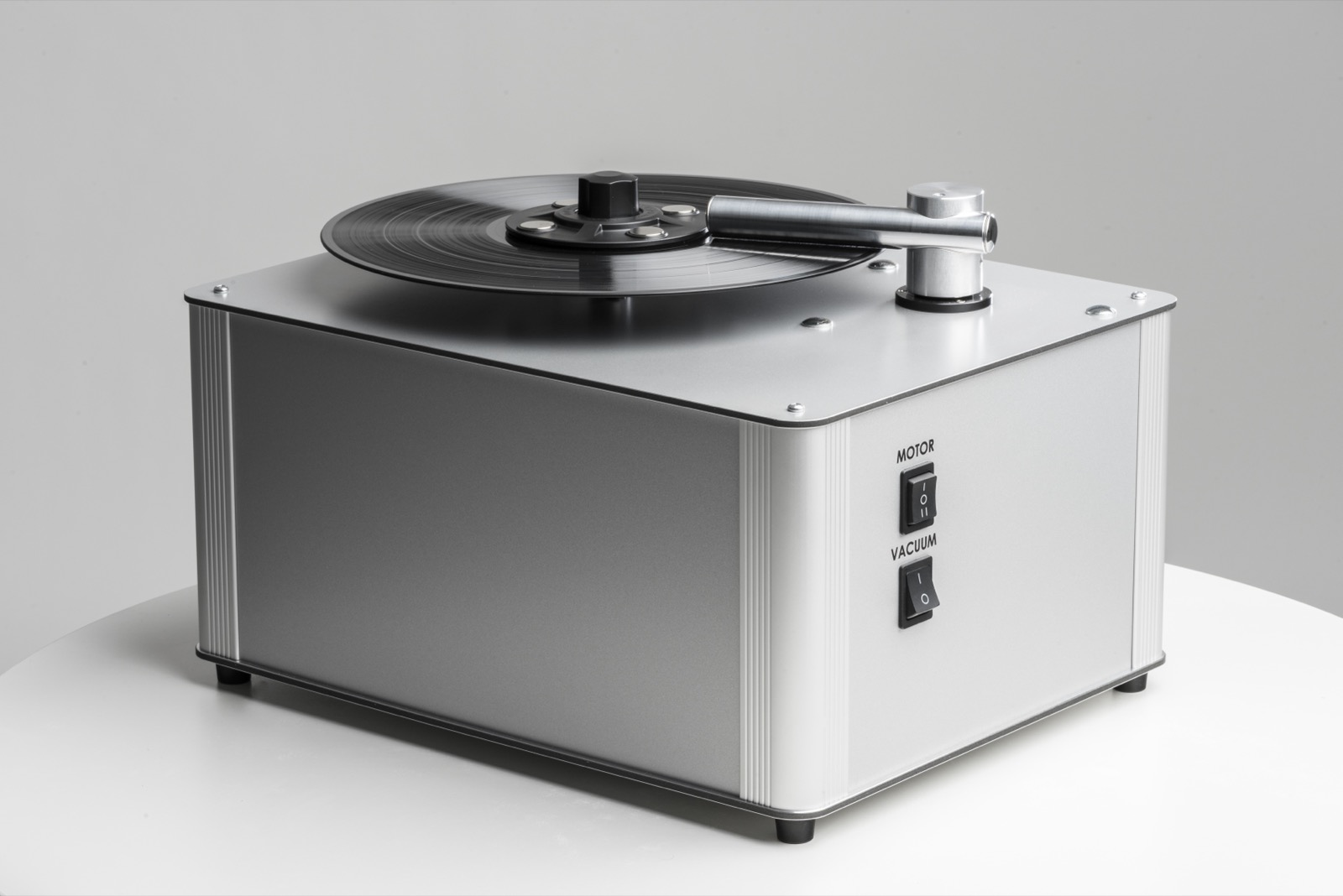 Die VC-S3 zeichnet sich durch ihre magnetische Klemme aus, die das Plattenlabel vor Flüssigkeit schützt und den Reinigungsprozess erheblich vereinfacht. Das mühsame Aufschrauben entfällt, sodass Sie Ihre Schallplatte schneller reinigen können. Der stabile Metallarm lenkt die volle Saugkraft präzise auf die Plattenoberfläche, während die selbstklebenden Absauglippen schonend, aber gründlich reinigen.